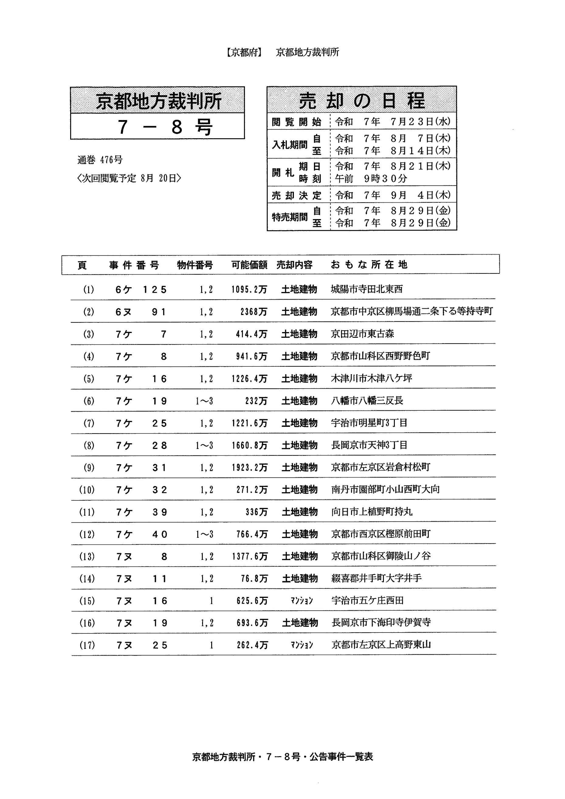 【京都】閲覧・開札情報7-8号