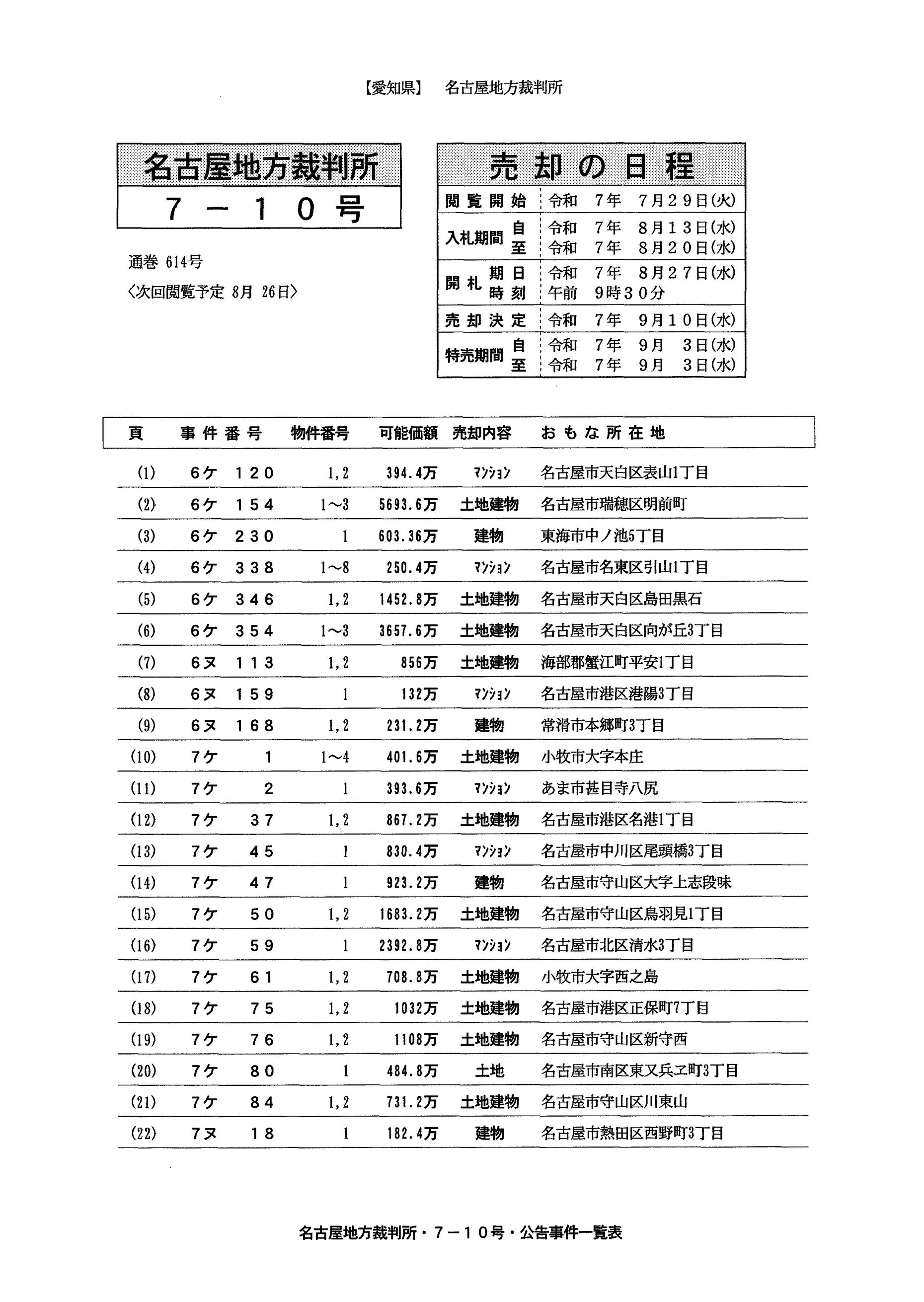 この一冊で不動産競売事件(競売物件)の概要とその開札結果(落札情報)をご覧になれます。