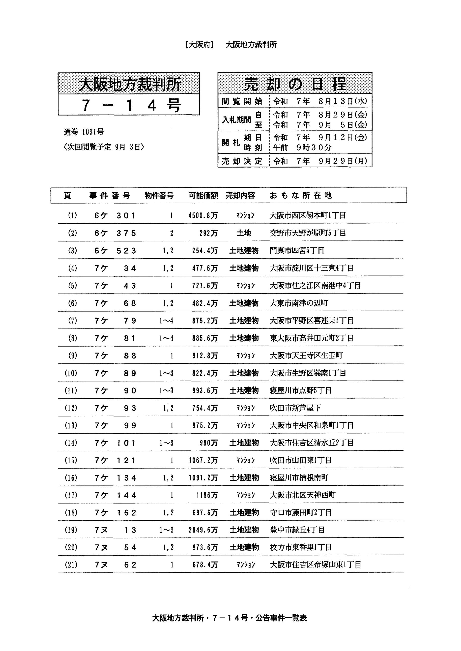 この一冊で不動産競売事件(競売物件)の概要とその開札結果(落札情報)をご覧になれます。