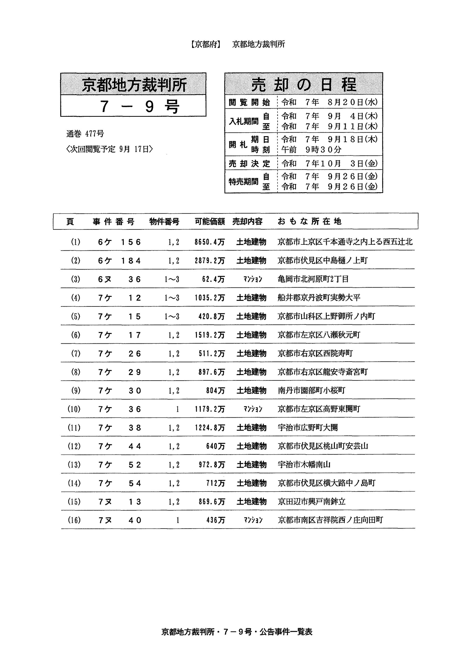 この一冊で不動産競売事件(競売物件)の概要とその開札結果(落札情報)をご覧になれます。