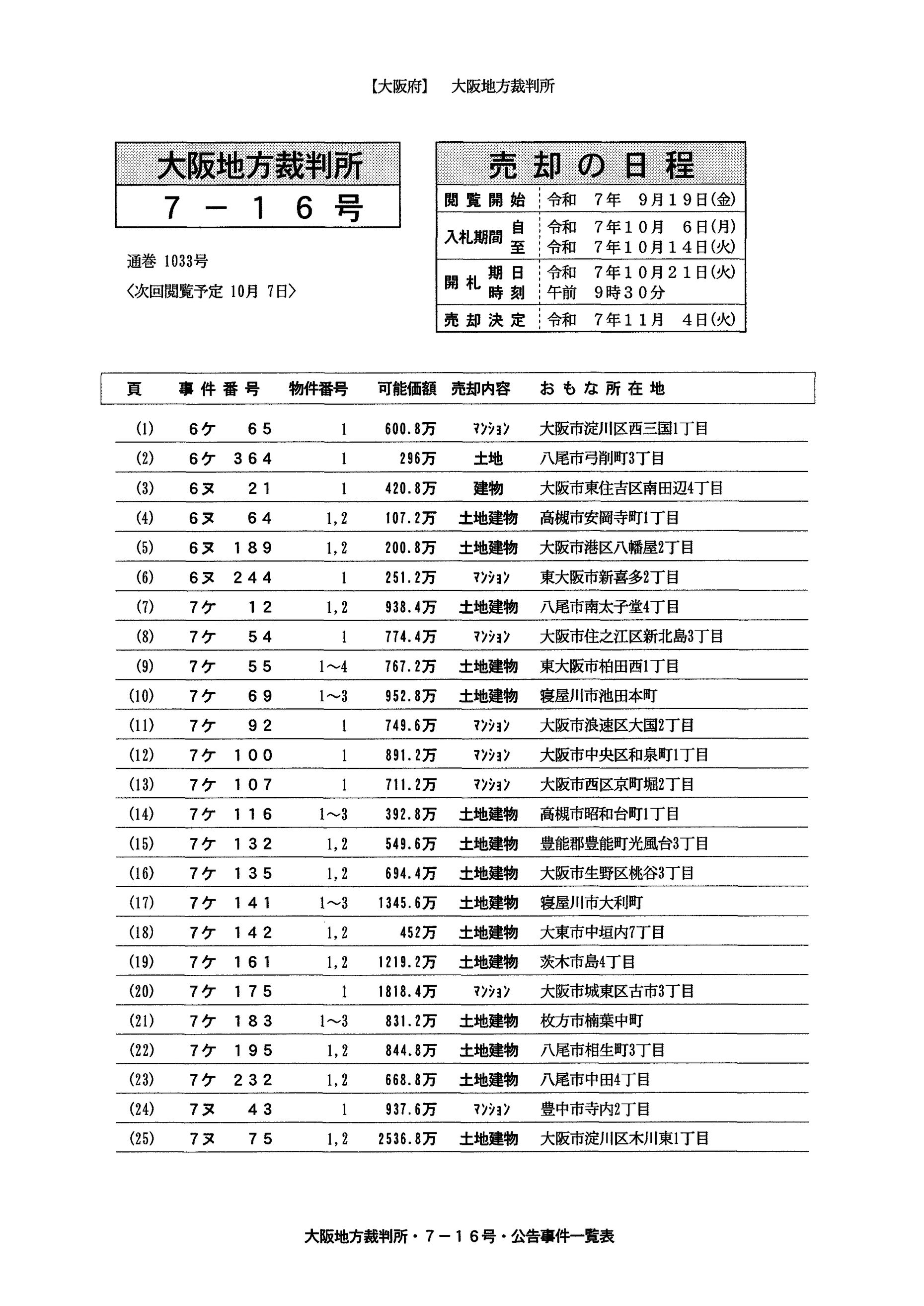【大阪】閲覧・開札情報7-16号