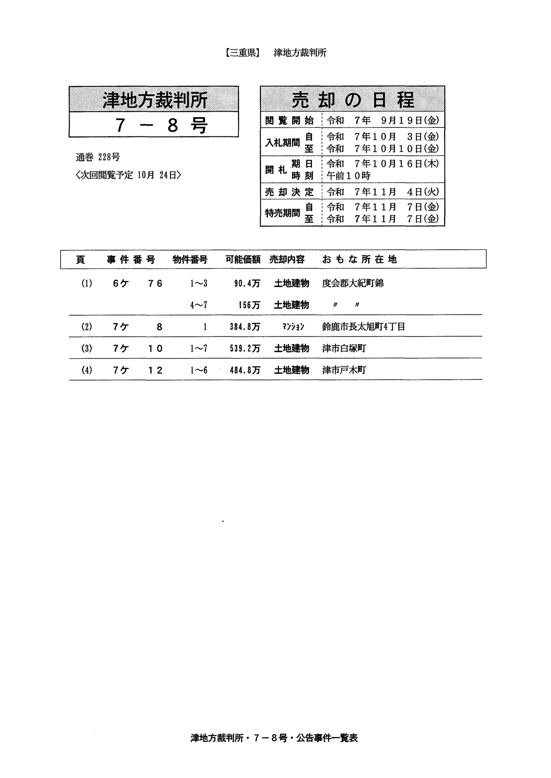 この一冊で不動産競売事件(競売物件)の概要とその開札結果(落札情報)をご覧になれます。