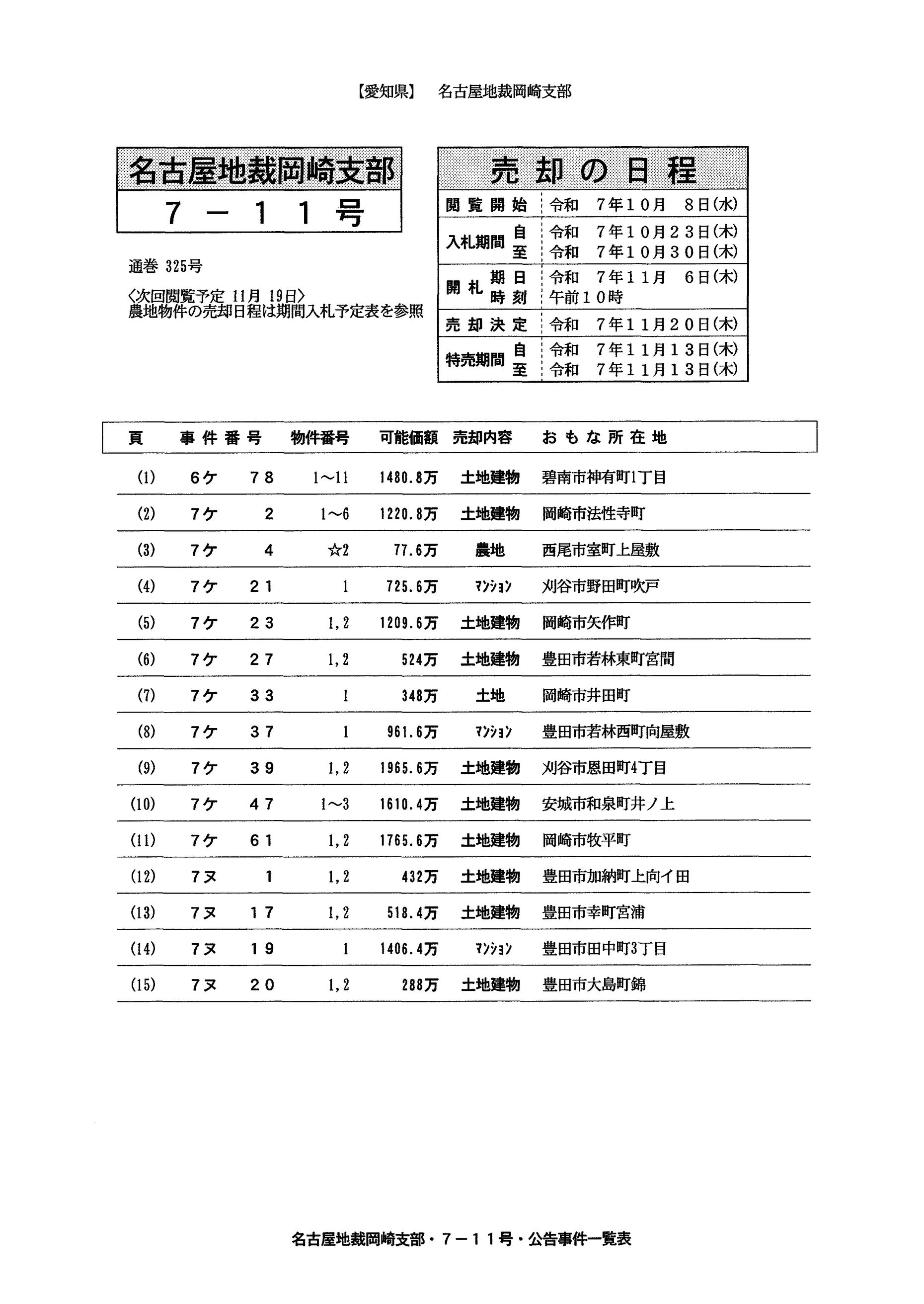 【岡崎】閲覧・開札情報7-11号