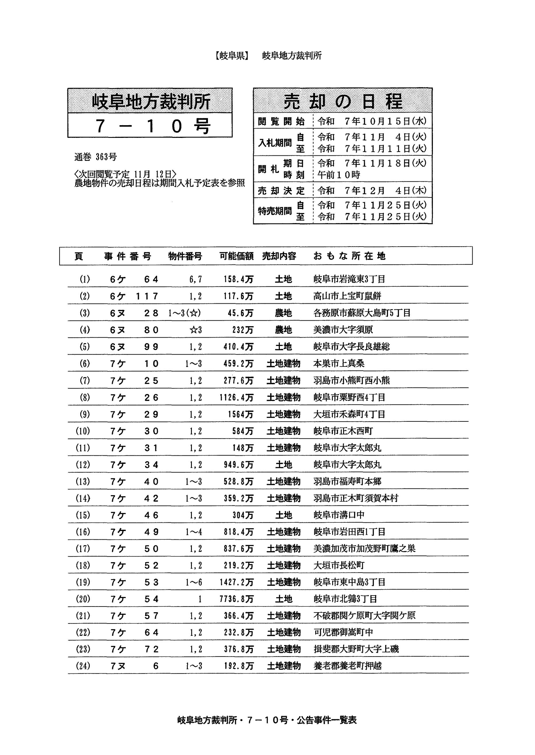 この一冊で不動産競売事件(競売物件)の概要とその開札結果(落札情報)をご覧になれます。