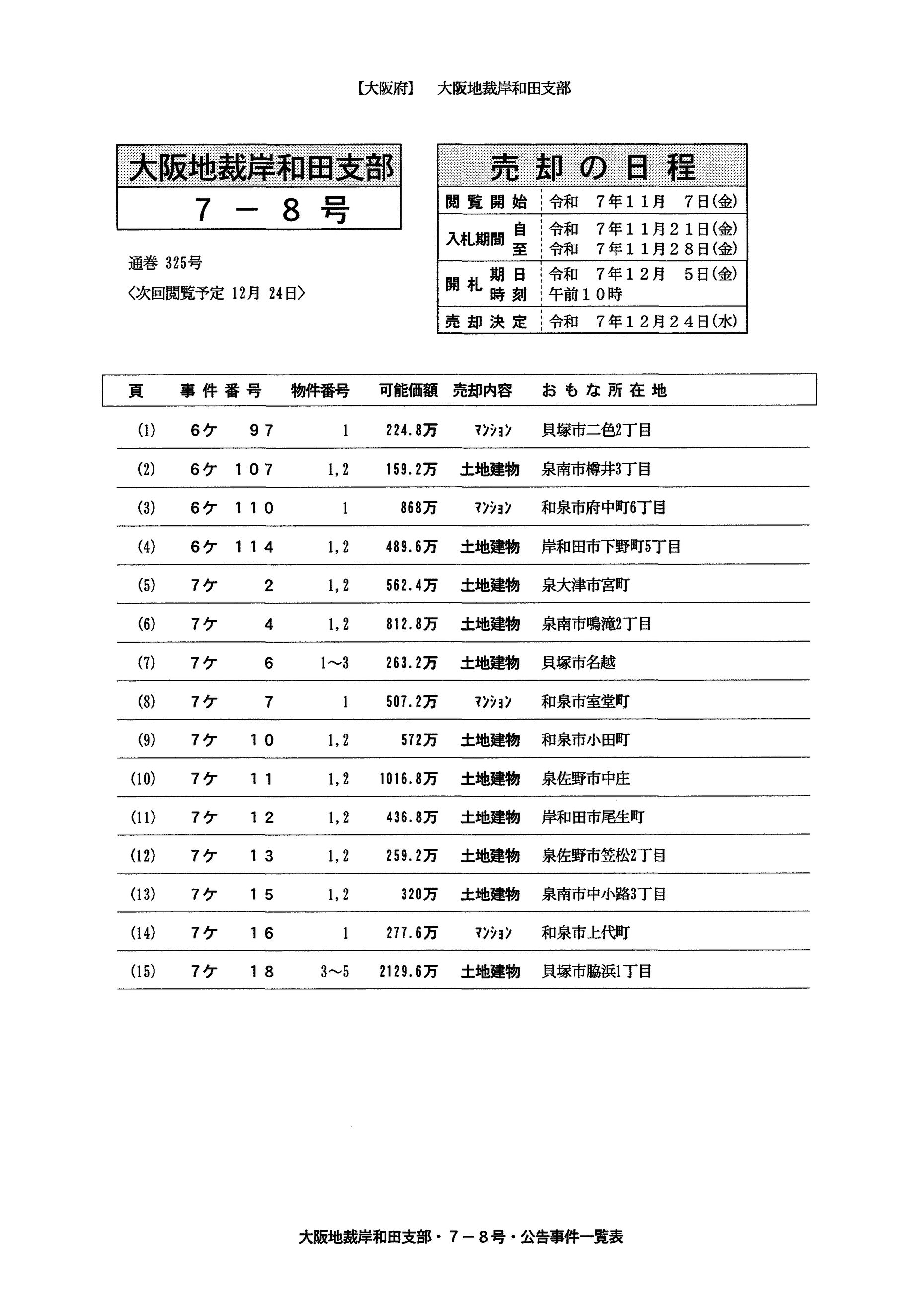 この一冊で不動産競売事件(競売物件)の概要とその開札結果(落札情報)をご覧になれます。