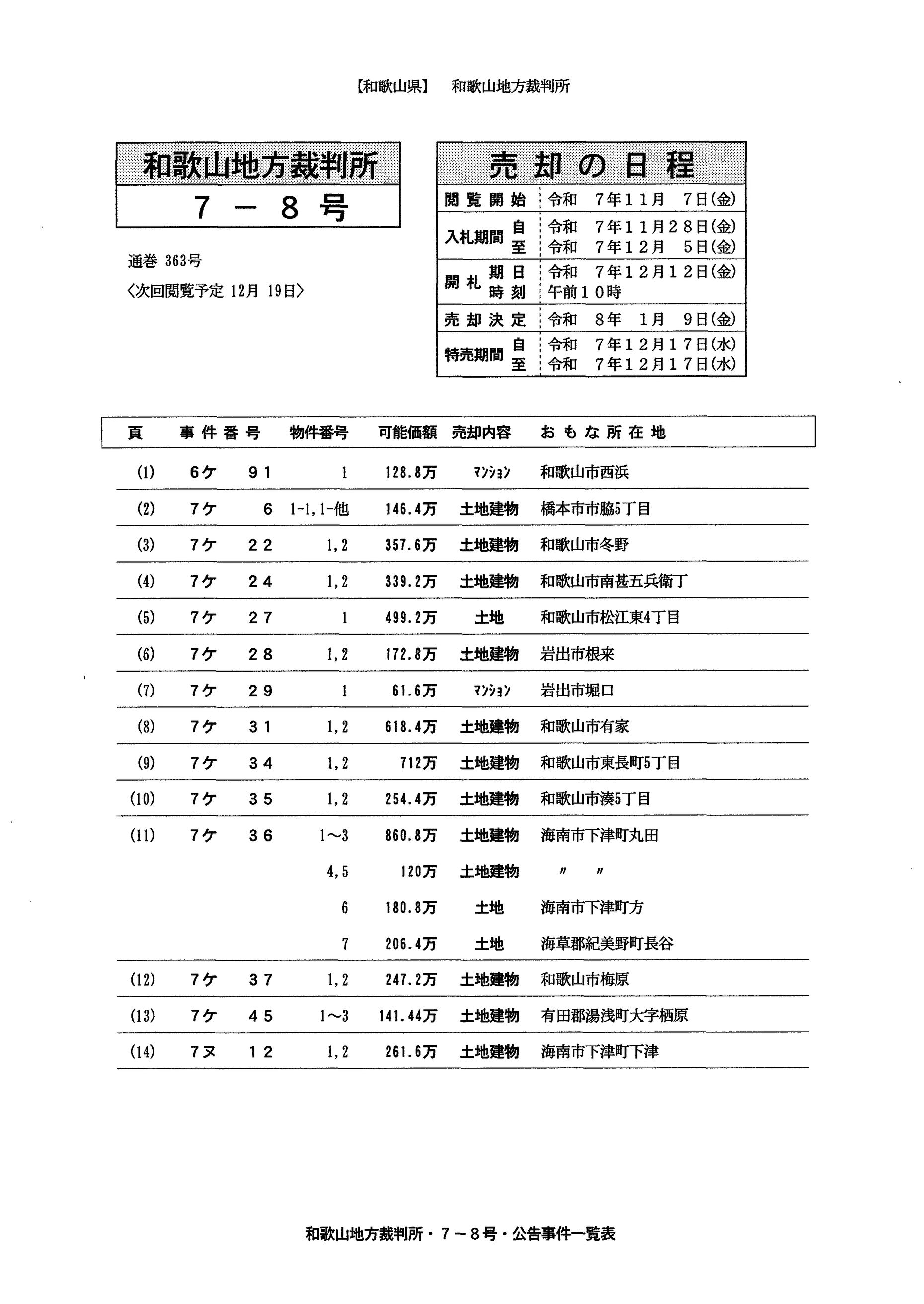 この一冊で不動産競売事件(競売物件)の概要とその開札結果(落札情報)をご覧になれます。