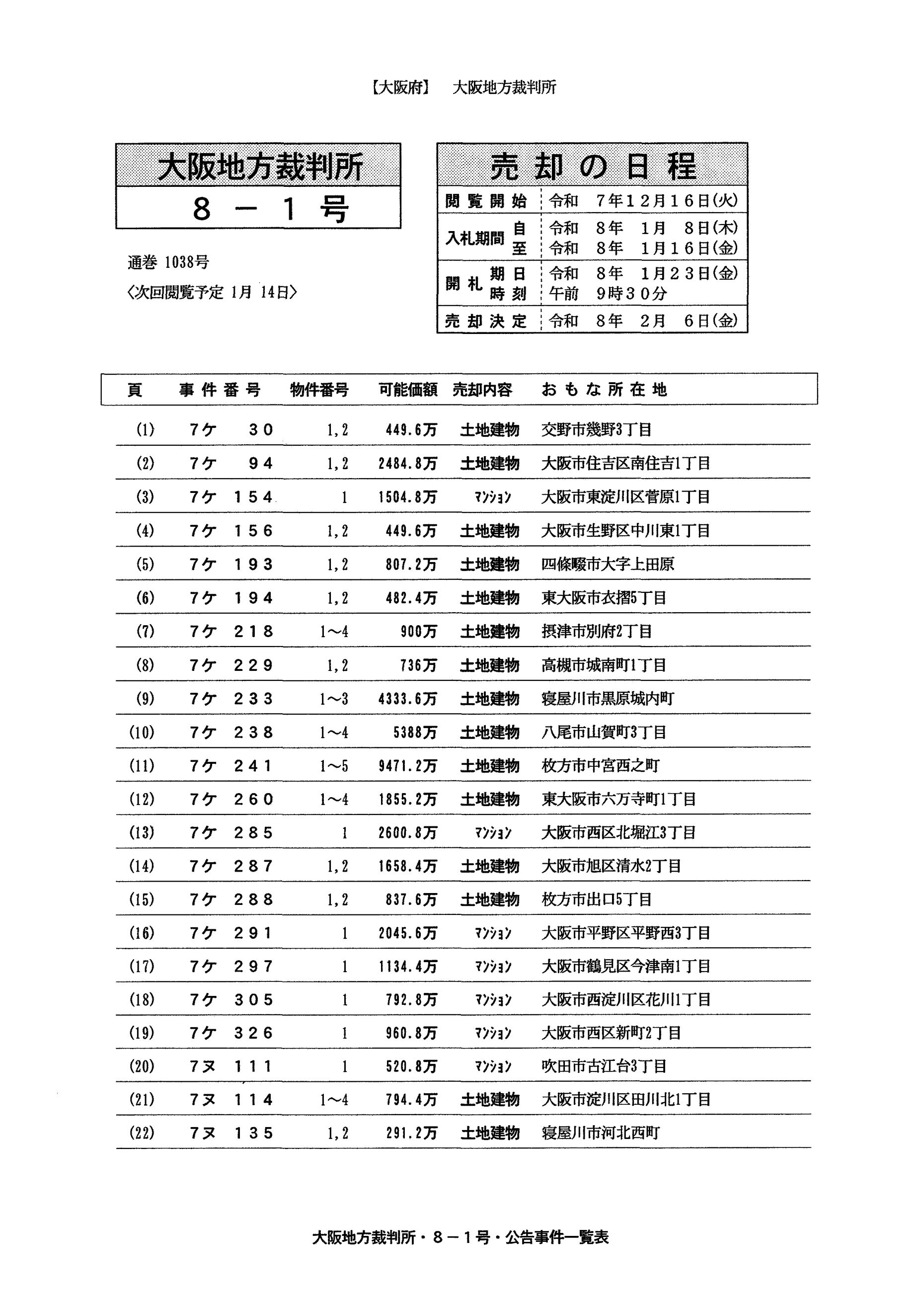 【大阪】閲覧・開札情報8-1号