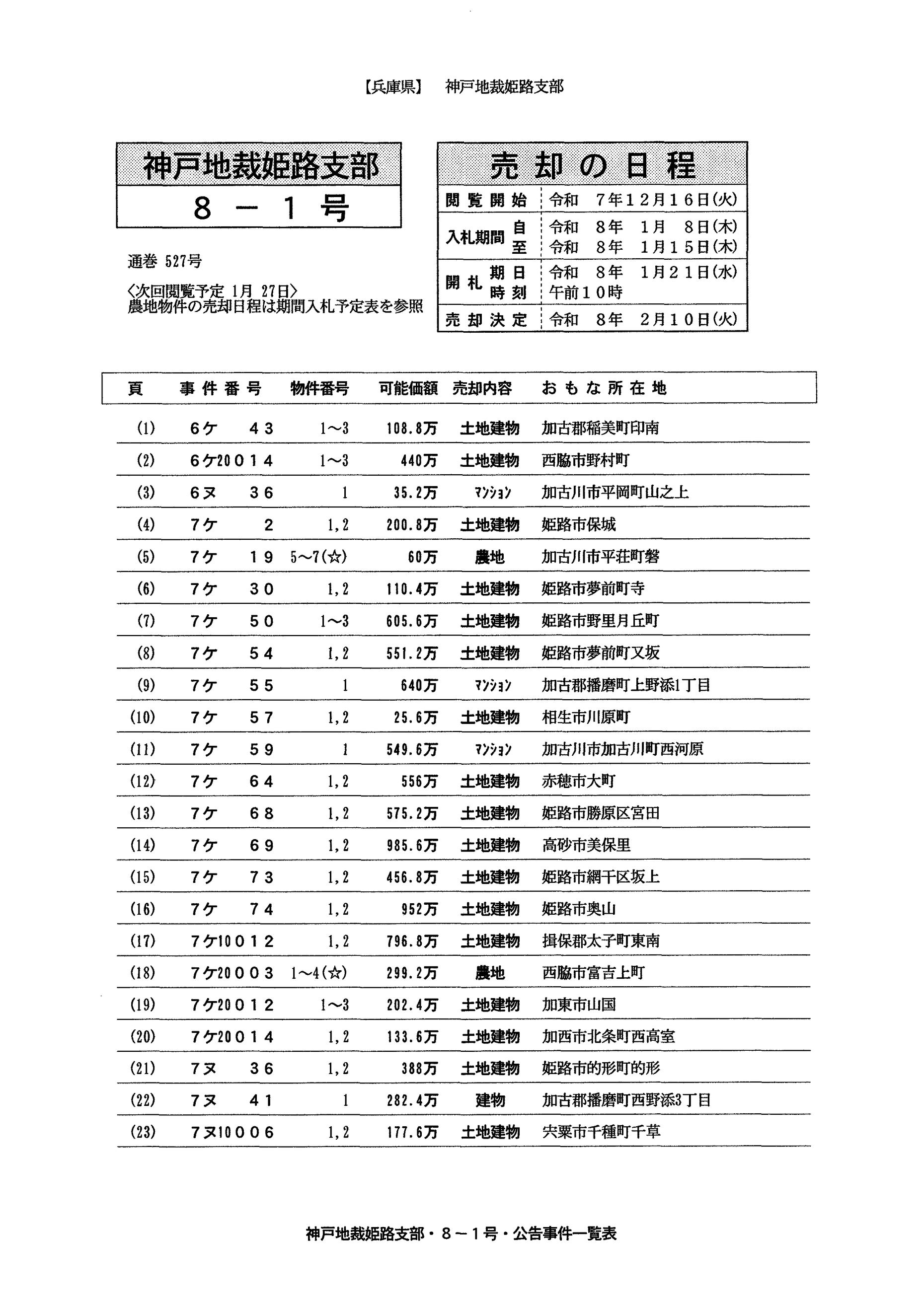 この一冊で不動産競売事件(競売物件)の概要とその開札結果(落札情報)をご覧になれます。