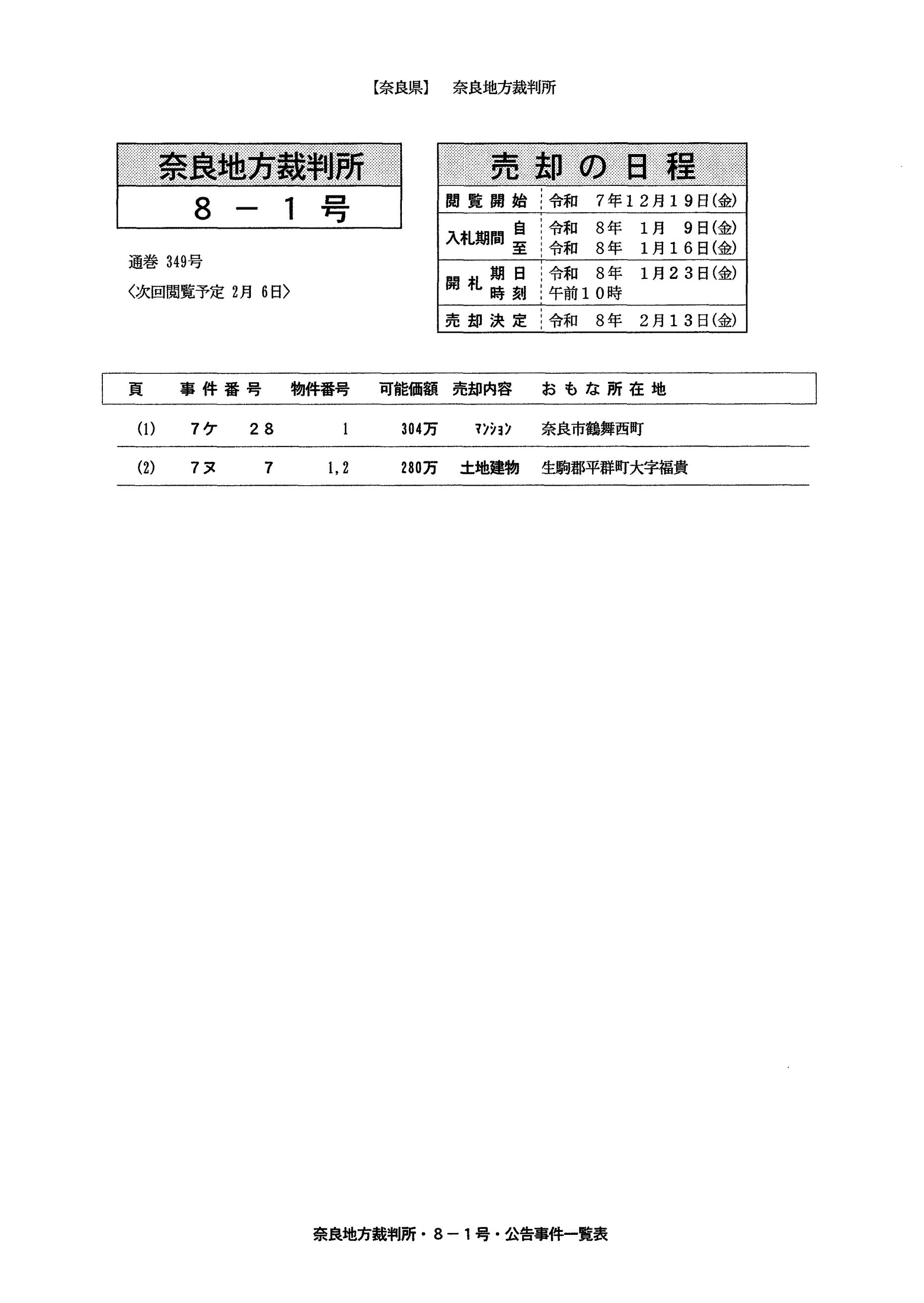 【奈良】閲覧・開札情報8-1号