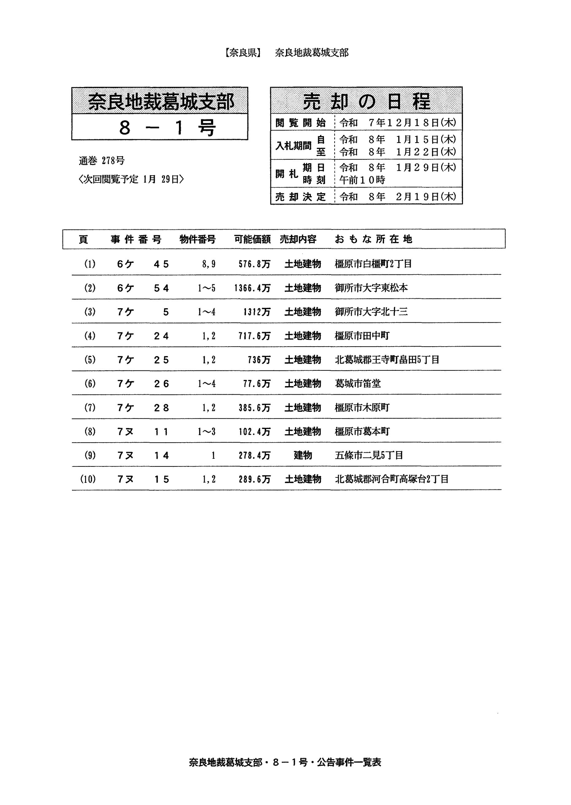 【葛城】閲覧・開札情報8-1号