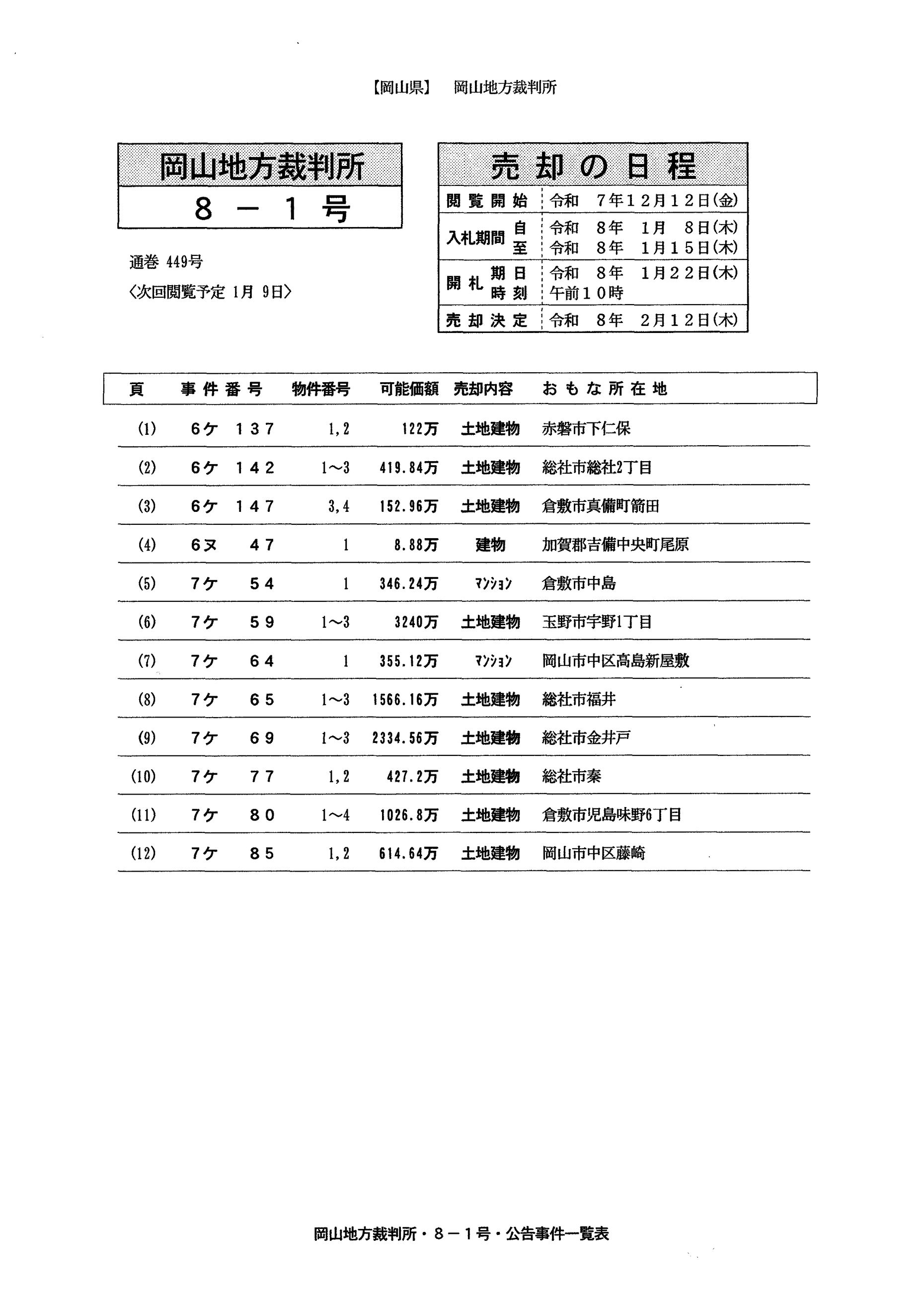 この一冊で不動産競売事件(競売物件)の概要とその開札結果(落札情報)をご覧になれます。