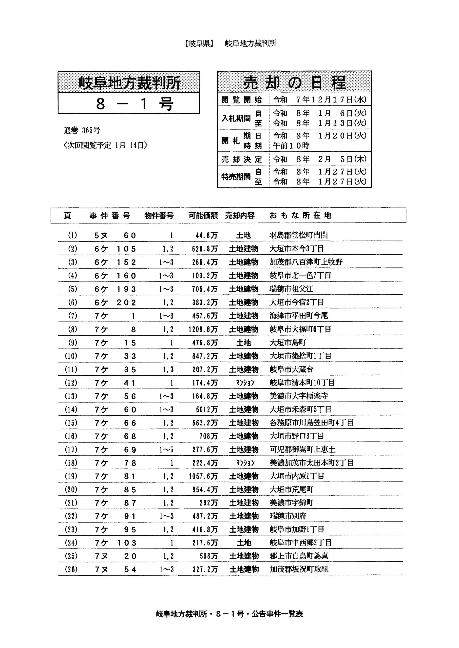 【岐阜】閲覧・開札情報8-1号