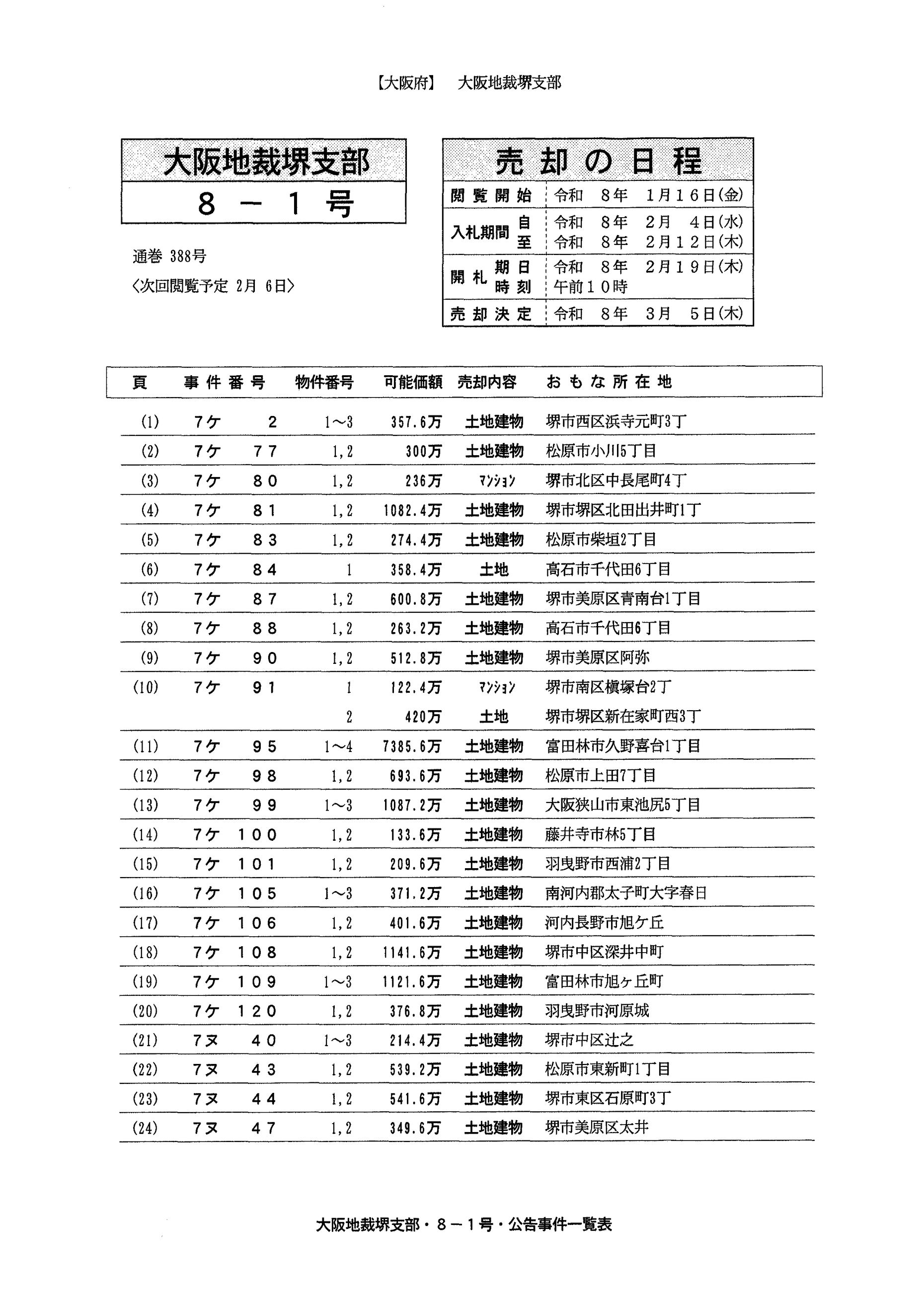 この一冊で不動産競売事件(競売物件)の概要とその開札結果(落札情報)をご覧になれます。