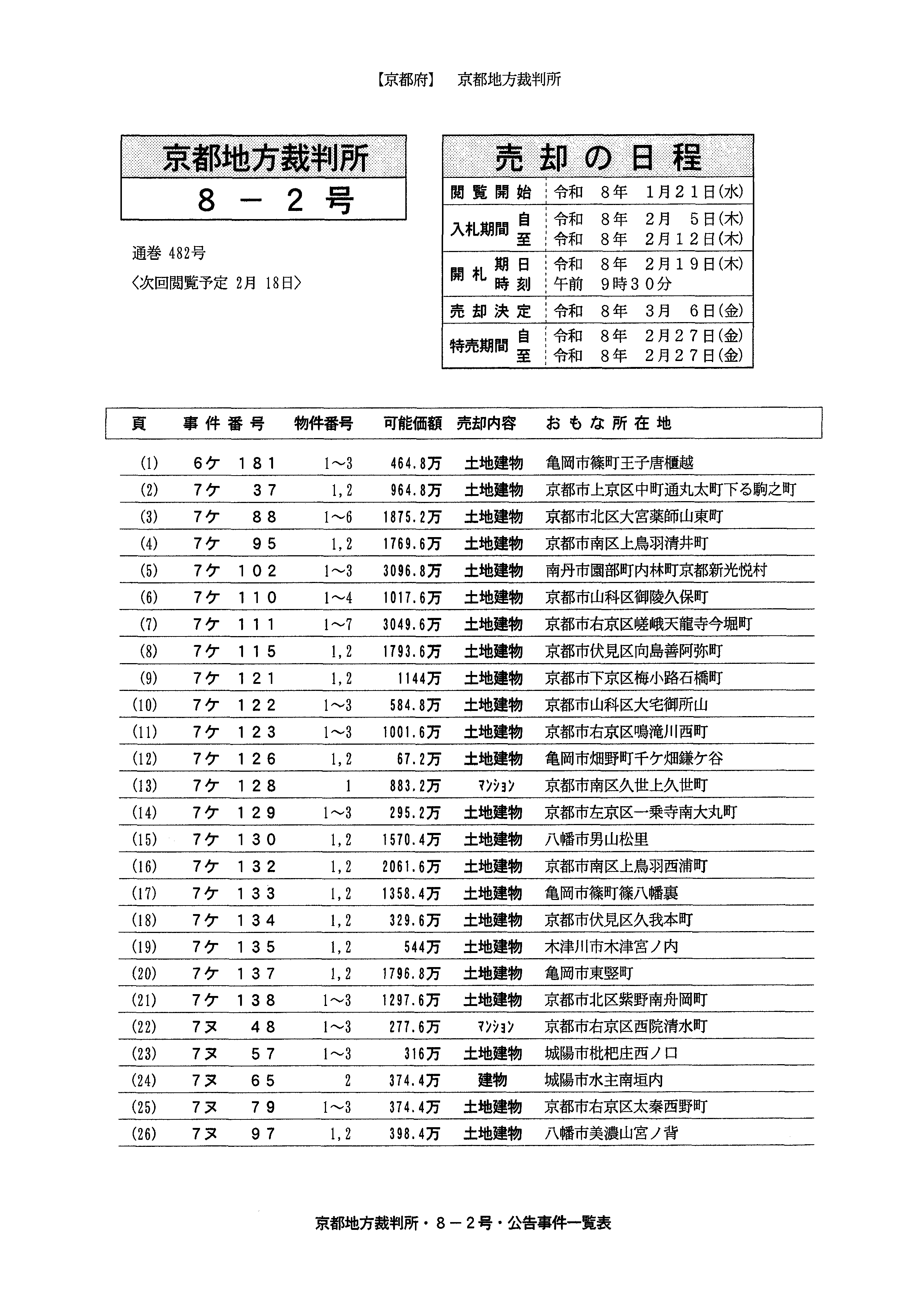 この一冊で不動産競売事件(競売物件)の概要とその開札結果(落札情報)をご覧になれます。