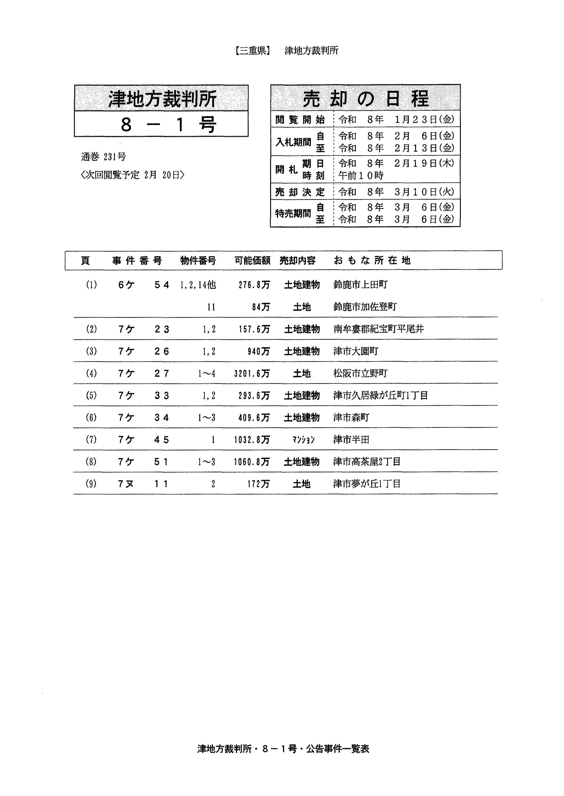 この一冊で不動産競売事件(競売物件)の概要とその開札結果(落札情報)をご覧になれます。